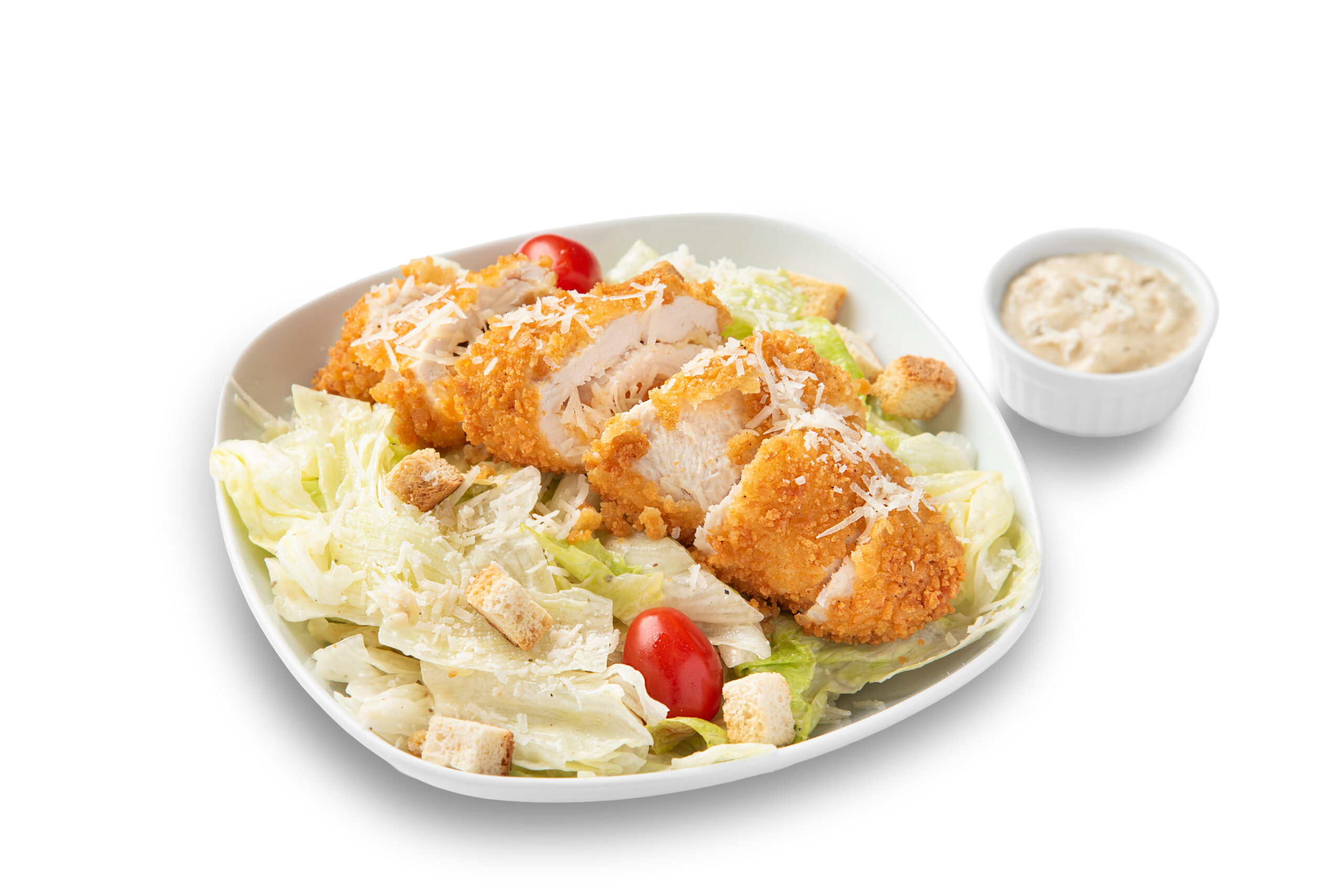 Lettuce , parmesan cheese , croutons grilled chicken breast with cheese filling and special sauce